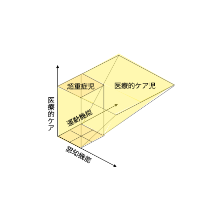 重症心身障害は,運動機能と認知機能の2つの軸だけではもはやとらえきれなくなり,「医療的ケアの必要度」という第3の軸もあわせて考えなくてはなりません。