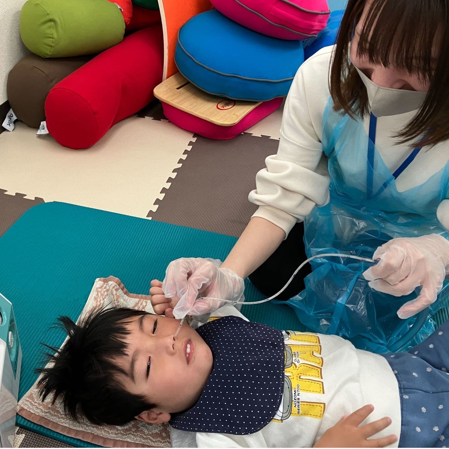シーガルではおもに医療的ケアを担当する看護師も常勤にこだわって配置しています。一口に医療的ケアといってもいろいろで、お子さまそれぞれで接し方や、手技が異なります。毎日勤務する常勤の看護師を配置する事で、お子様の個別性を熟知して細かい手技配慮に対応します。シーガルは、看護職員配置加算を取得しているため、経管栄養や口鼻腔吸引などの基本的な医療的ケアから、気管切開、人工呼吸器管理まで幅広い医療的ケアに対応しております。