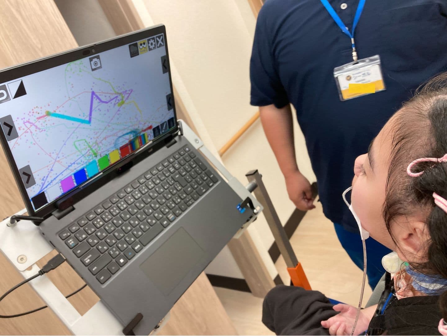 お子さまの機能訓練を行う上で「もっと触ってみたい」「もっと見てみたい」「もっと遊びたい」といった意欲を引き出すことが必要不可欠です。シーガルではどんなハンディキャップがあっても遊びを通じた喜びから意欲を引き出せるよう、多様なICT機器を導入しています。一例として、Tobii 社の視線入力装置 Eye Tracker5、意思伝達・療育機器COSMO、指巻きスイッチや静電式スイッチとMaBeeeを組み合わせたおもちゃなど、最新の機器をそろえています。